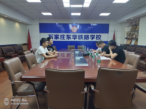 2019年8月30日上午九时,中铁电气化合肥维管段刘副段长、党办马主任、人劳部韩主任与石家庄青华人力资源管理有限公司负责人,一同前往石家庄东华铁路学校就本次招聘面试进行了对接,石家庄东华铁路学校就业处宋处长接待了本次招聘企业负责人。