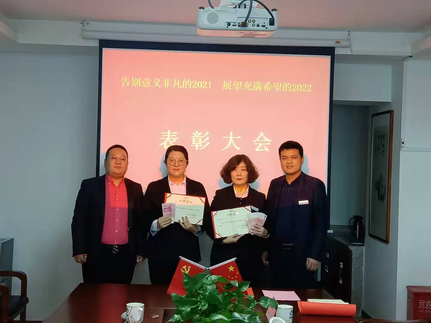 青华人力在2021年能够快速发展,除了集团和公司领导的英明战略指引外,离不开优秀员工们的默默坚守和付出,在会议表彰大会环节,公司领导分别向获得“2021年优秀员工”、“2021年优秀新员工”荣誉的员工们颁发了荣誉证书和奖金,以此表扬先进、树立典型,进一步激励和促进全体员工工作再上新台阶。
