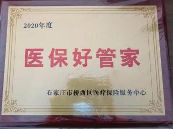 石家庄青华人力资源管理有限公司 被石家庄市桥西区医疗保险服务中心授予“医保好管家”荣誉称号