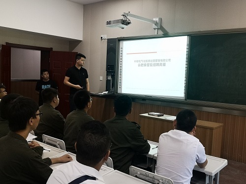 首先中铁电气化合肥维管段人劳部韩主任,通过企业宣传片播放及PPT等形式,向参与本次面试的同学详细介绍了本次招聘的岗位、工作内容及工作环境,使同学们对本次参加面试的岗位与工作实况有了更加深入的了解。